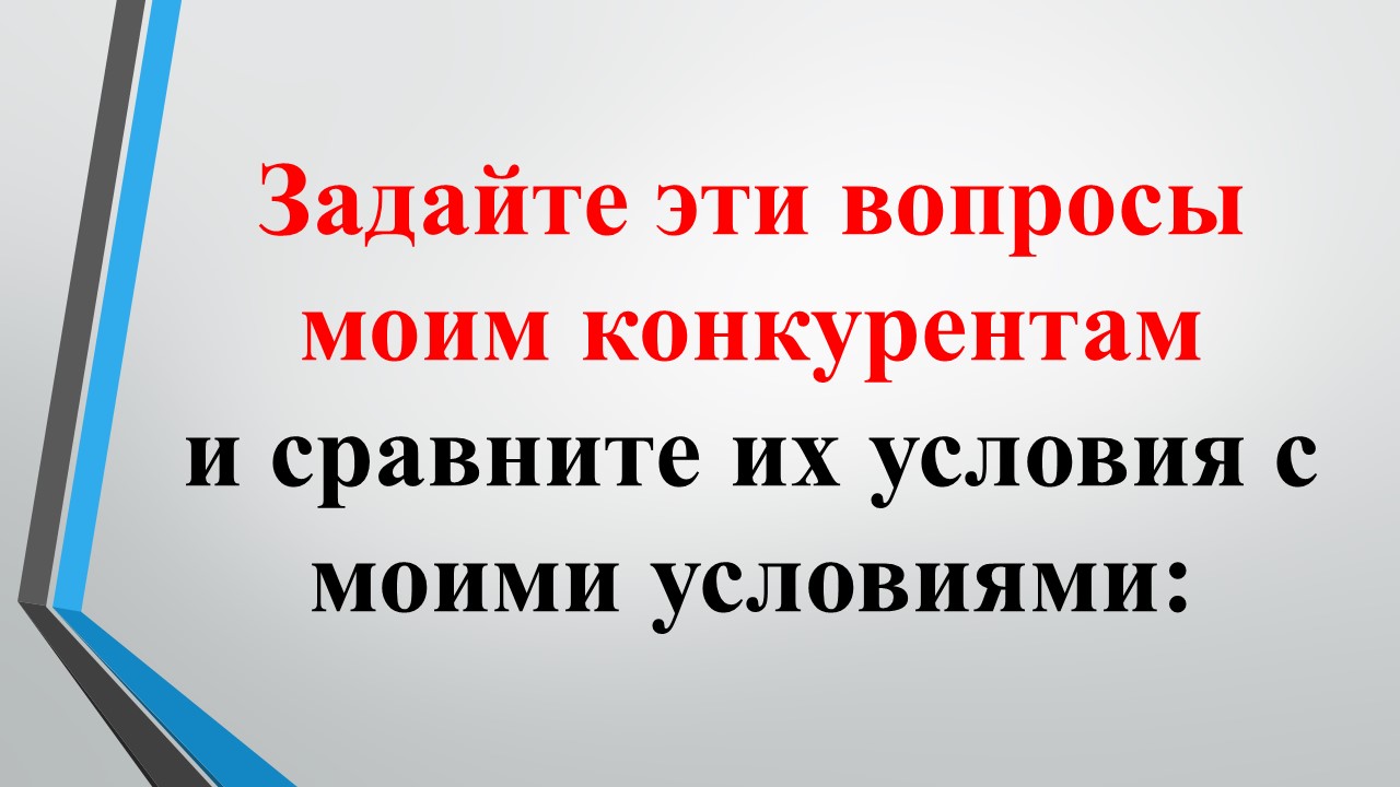 1) Вы прозвонили моих конкурентов, узнали, сколько это стоит у них? Ну, и как?