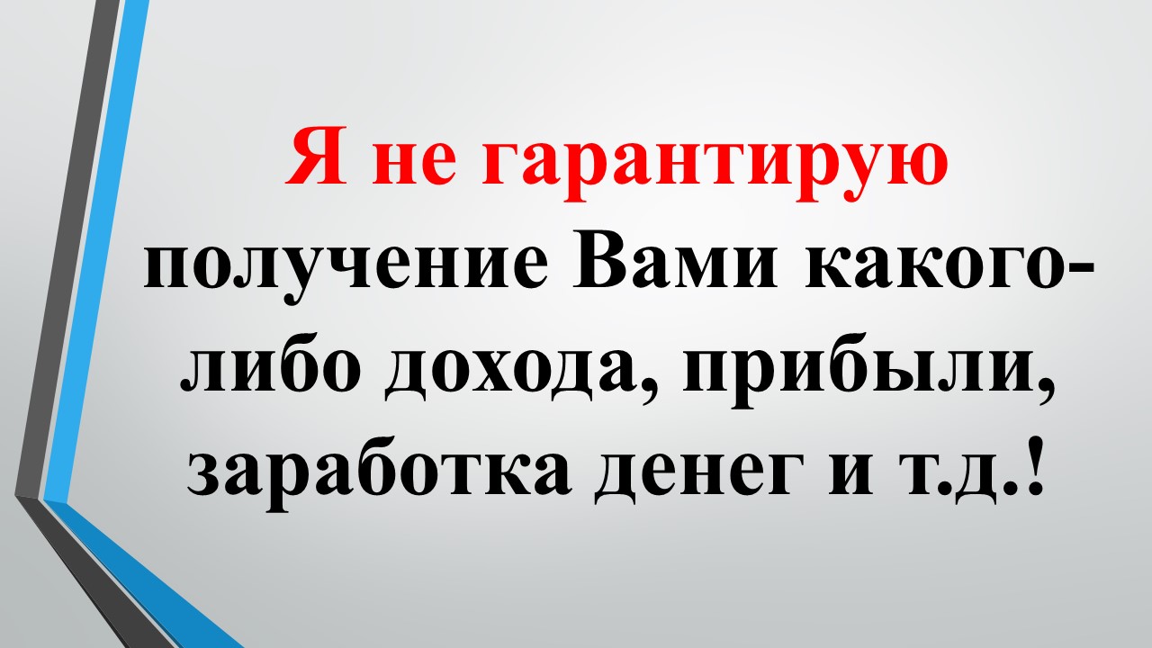 В принципе, решение принимать только Вам, я на Вас не давлю, это только Ваша жизнь и только Вам решать, хотите ли Вы увеличить свой доход и кардинально изменить качество жизни, но я не имею права не рассказать Вам о том, что: